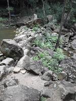 From the bottom of the lower Wentworth Falls cross Jamison Creek (see photo below). From this crossing there is a track which you can follow for about 500m after this it peters out. Stay then at an altitude of between 500 and 540m. You should find a series of flatter sections which make the walking easier. Dropping below this level increases the amout of lawyer vine you will have to fight your way through. Going high is clear in terms of vegetation but your time will be consumed in navigating around ledges that lead nowhere and drop offs you will continually go up and down to negotiate.